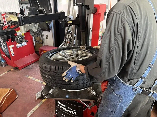 スタッフが丁寧にホイールを扱いながら、手際よく作業を進めている姿は、